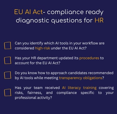 If the answer is NO, your organization is at risk. Addressing these early will help avoid fines and reputational harm while fostering ethical, transparent AI use within your HR department.